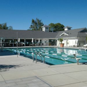 5,000 square foot pool includes six lanes and a diving well. A separate children’s pool is located adjacent to the main pool. Extensive concrete decks and open lawns surround the pools.