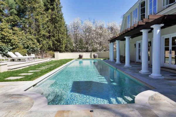 The property features an in-ground swimming pool that is 60 feet long and easily accommodates recreational play, exercise and serious athleticism.