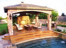 This can be something as simple as a small deck or patio with a couple of chairs in just the right spot. On the other hand, it can be a large "living room" with comfortable all-weather couches, a roof, ceiling fans, a large stone fireplace, and a large-screen television to watch your favorite events. Of course, if you’re going to have that many people sitting around in an outdoor living area, you probably also want to consider the addition of an outdoor kitchen.