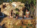 This is essentially a cave (or something similar to a cave) built into or con- nected to the pool, typically with a sitting area. It is common to build waterfalls or weeping walls on the outside of the grotto, and/or a rain wall at the entrance. Youngsters love it when a slide is built in to (on top of or to the side of) the grotto. If you build it large enough, you can actually put your spa inside the grotto, to offer extra privacy, and a more romantic mood.