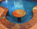 A swim-up bar is quite treat for people both in and out of the pool. It can connect to a real bar on the outside, or it can be a bar-type table that allows wet and dry people (in the water and out of the water) to sit together at the same table. (See also In-Water Tables.)